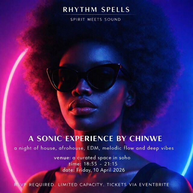 Rhythm Spells is an intimate music and movement experience curated by Chin We, taking place on Friday 10 April 2026 in Soho, London.